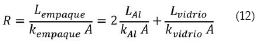 El empaque de aluminio tiene un espesor de 1 mm de aluminio y en el interior del empaque hay vidrio, por lo que la conductividad térmica del empaque de aluminio se determina como una pared compuesta.