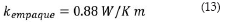 | Tipo de empaque | k, Conductividad térmica (W/Km) | Coeficiente k y a promedio | Eficiencia promedio (%) |