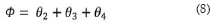 - Cinemática inversa: conociendo el ángulo con el cual se quiere orientar la pinza Φ (ver figura 6) y la posición a la cual se llegará (x, y, z), mediante transformaciones geométricas se determinaron los ángulos de cada uno de los eslabones para alcanzar un punto en específico, siempre que dicho punto se encontrara dentro del volumen de trabajo. A partir del análisis de la figura 6, conociendo el punto (x,y) se recurrió a la proyección sobre la línea R, obteniendo la distancia R y el ángulo 𝜃 1 (ver ecuaciones 6 y 7).