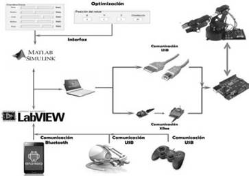La interfaz desarrollada para la integración del GamePad permitió configurar la comunicación por USB con la opción VISA resource o el protocolo inalámbrico Xbee\Coordinador.