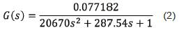 De otra parte, se diseñó un controlador PI digital 12 el cual estará actuando sobre el variador de velocidad, cambiando la señal del PWM, asignado a este. La reali mentación del sistema se obtendrá con la cantidad de pa sadas por minuto que son captadas por medio del sensor efecto hall y cuyas constantes del controlador fueron cal culadas por el método en lazo abierto de Ziegler-Nichols (13), obteniendo la función de transferencia (2):