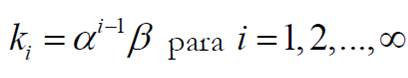 Las principales características que encontramos es que esta función es una función de probabilidad geométrica, la cual es estrictamente decreciente y pondera cada escenario generado, teniendo que vi ki =1. La nueva distribución de frecuencias que se obtiene es la siguiente:
