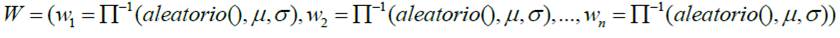 3. Supondremos que los rendimientos siguen un comportamiento normal, entonces procedemos a encontrar los estimadores máximos verosímiles de la media μ y la desviación estándar σ de la muestra. Obtenemos una muestra W de una distribución normal con parámetros (μ, σ2), a partir de la generación de números aleatorios