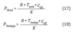 En la Tabla 2 se muestran las diferentes presiones de vapor de agua en función de la presión de trabajo planteada en la Ecuación 20.