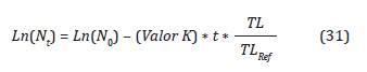 La tasa letal (TL) se define como el tiempo equivalente de un proceso a una temperatura de referencia de 54 2C con respecto a temperatura de trabajo (Agalloco y Carleton, 2007; Mendes, Brandão y Silva, 2007; Mendes y Brandao, 2012). La Ecuación 4, representa la tasa de letalidad para Bacillus atro-pheus a TRef = 54 °C y Z= 31 °C.
