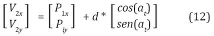 El punto de intersección es calculado cuando P 1 = P 2, esto lo determina el resultado de la solución del sistema de ecuaciones paramétricas (7) y (8) como sigue: