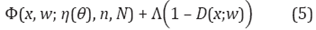 se adiciona al criterio de diseño Φ(x, w; η(θ), n, N) para penalizar a los diseños experimentales.