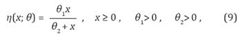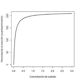 donde η es la velocidad pronosticada de la reacción y la x es la concentración de sustrato. La forma modelo esperada se presenta en la Figura 1.