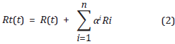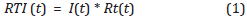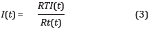 I(t) es la intensidad del evento de lluvia detonante en un tiempo t, medida en milímetros por hora [mm/h] y Rt(t) se define matemáticamente por la expresión: