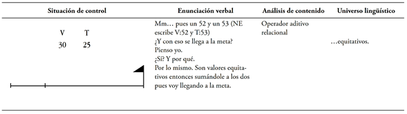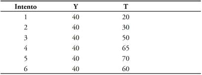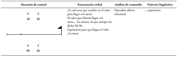 La Tabla 8 presenta evidencia de un operador aditivo relacional que le permite al sujeto estimar llegar a la meta con valores que juzga equitativos.