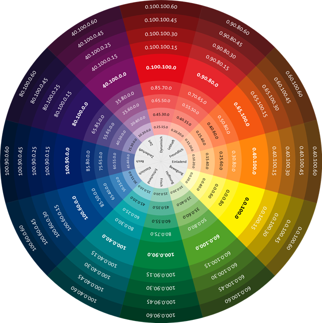 Figura 4. Rueda cromática con la notación empleada en el sistema CMYK (2006)