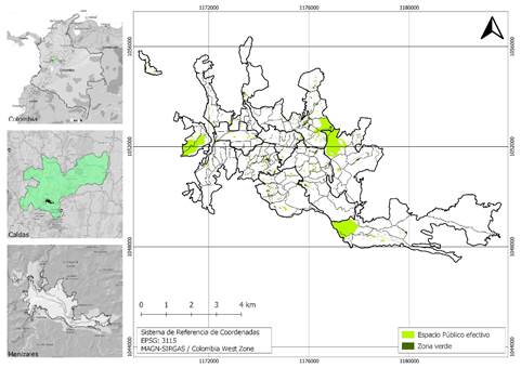 Figura 2 Espacio público efectivo y zona verde de Manizales