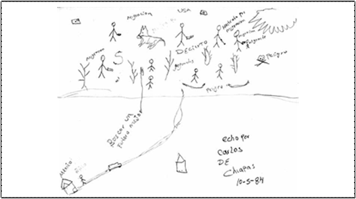Vistos y revisados los dibujos, queda claro que la relación de migración indocumentada y violencia van de la mano, confirman lo que la mayoría de los estudios muestran sobre la migración indocumentada, la experiencia vivida y su vínculo con la violencia. En términos metodológicos, los dibujos sustentados y contrastados con los aportes teóricos y pragmáticos en este tema, nos entregan información similar al proceso de una entrevista, con la diferencia en este caso de que es el propio migrante quien cuenta o relata de forma gráfica su experiencia vivida y trata de representarla.