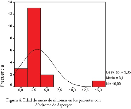 El síntoma más llamativo para los padres fue la dificultad para socializar. Esta dificultad se asocia a una adquisición tardía del lenguaje comparable con los datos suministrados por Howlin en 1999 (15). Desafortunadamente este síntoma, aparición tardía del lenguaje, en muchas oportunidades es subvalorado por el sistema de salud e incluso por el grupo familiar, Figura 5.