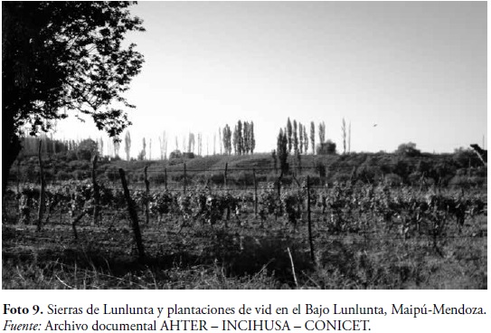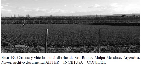 Paulatinamente, como sostiene Cirvini (2009), los pobladores a través del trabajo del suelo nutrido con riego por acequias fueron conformando un paisaje agrícola protoindustrial a campo abierto que sufrió profundas modificaciones ante la industrialización y la primera modernización vitivinícola.