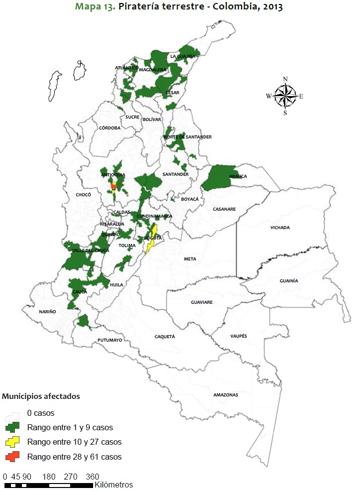Mapa 13. Piratería terrestre - Colombia, 2013