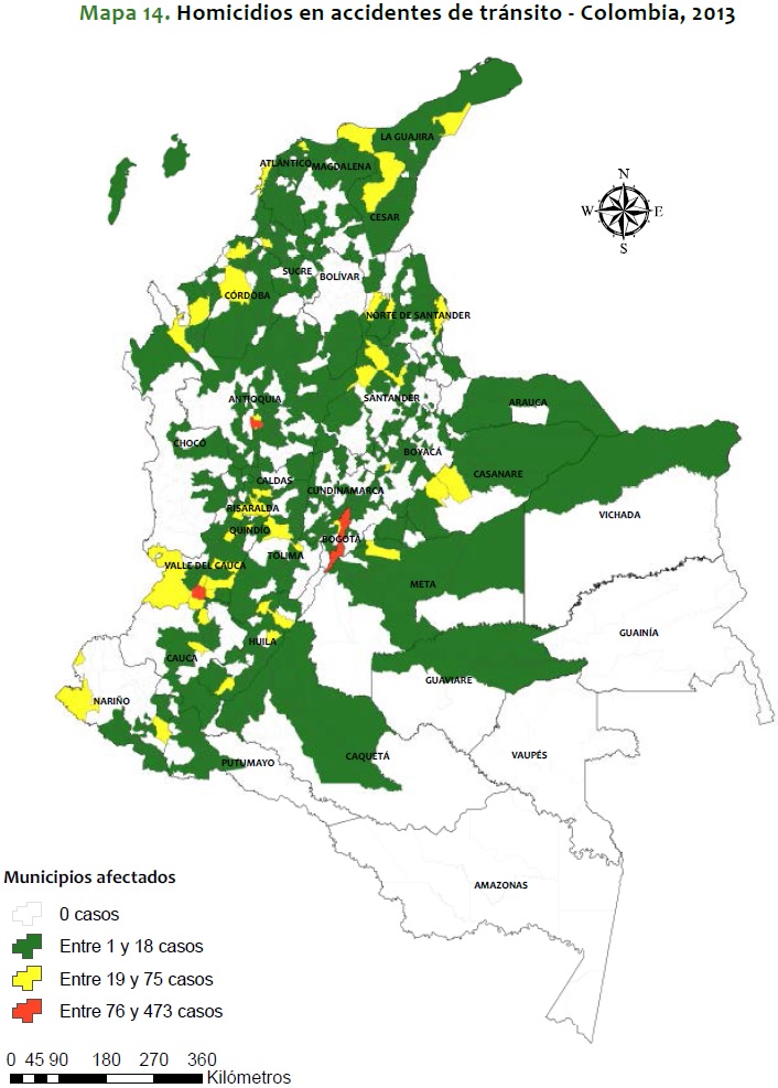 Mapa 14. Homicidios en accidentes de tránsito - Colombia, 2013