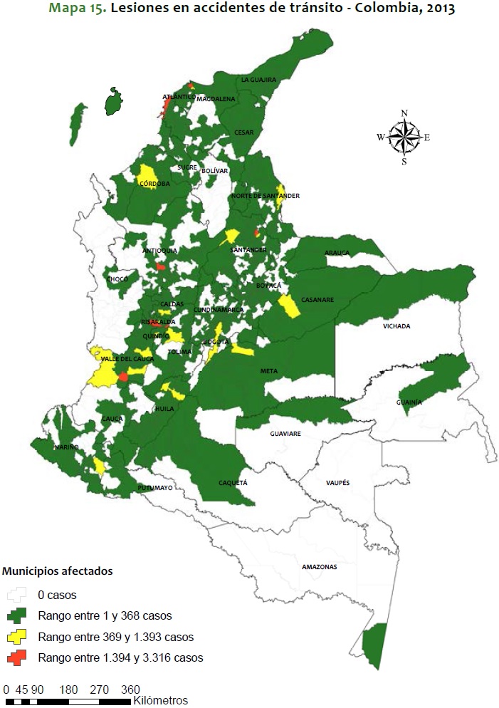 Mapa 15. Lesiones en accidentes de tránsito - Colombia, 2013
