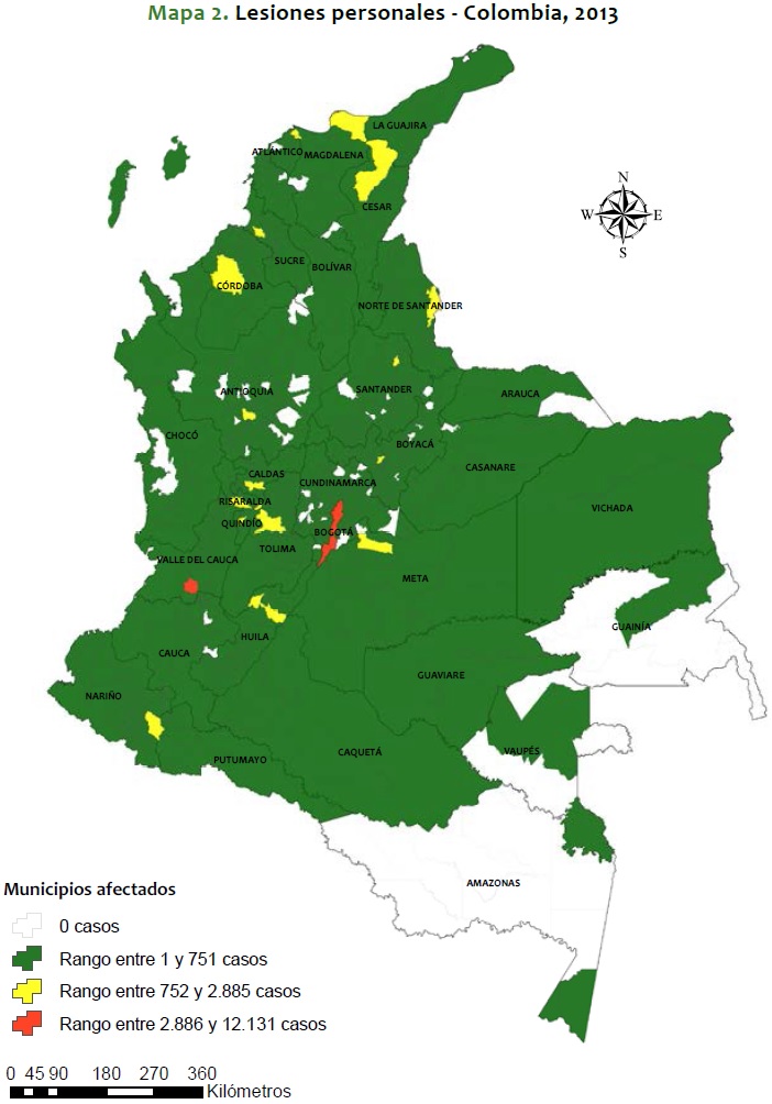 Mapa 2. Lesiones personales - Colombia, 2013