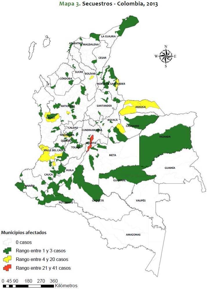 Mapa 3. Secuestros - Colombia, 2013
