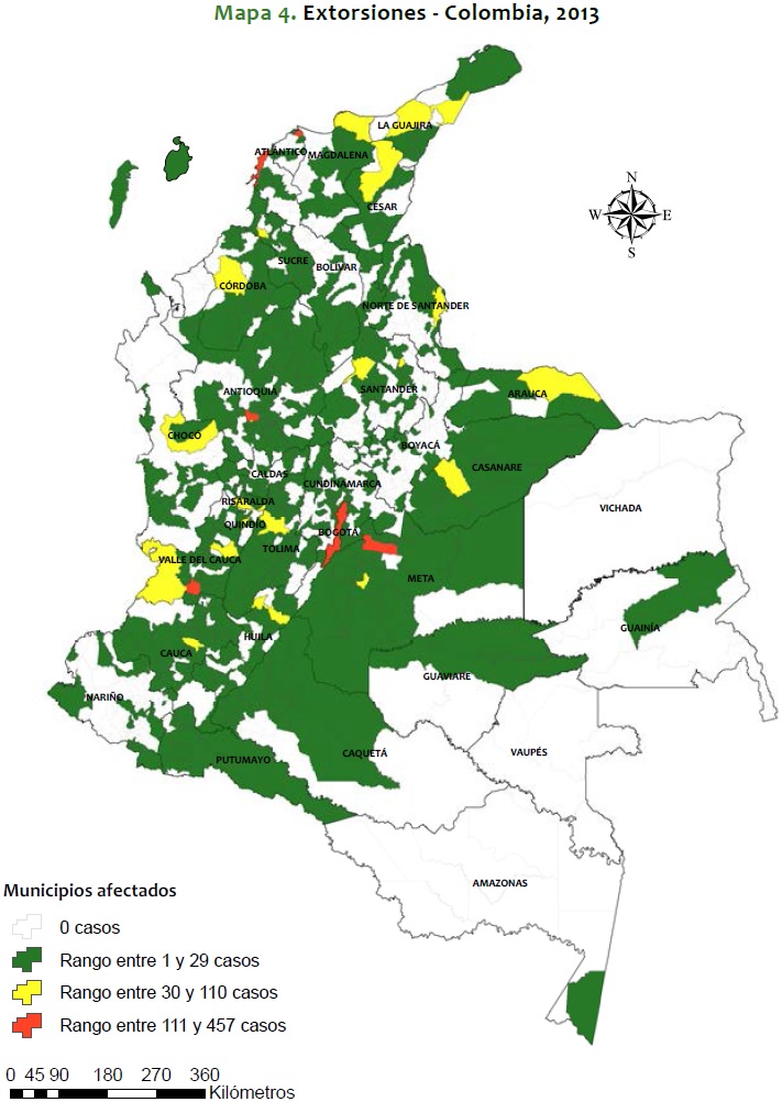 Mapa 4. Extorsiones - Colombia, 2013