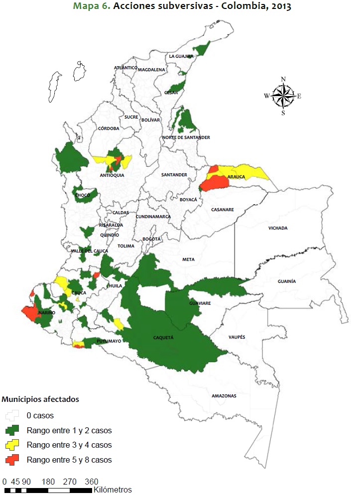 Mapa 6. Acciones subversivas - Colombia, 2013