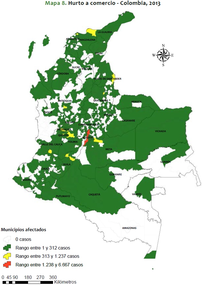 Mapa 8. Hurto a comercio - Colombia, 2013