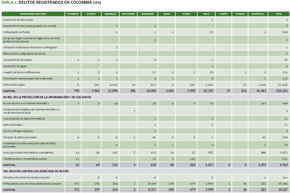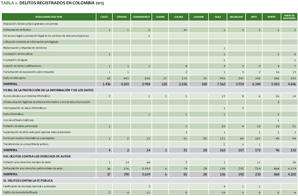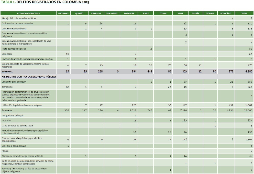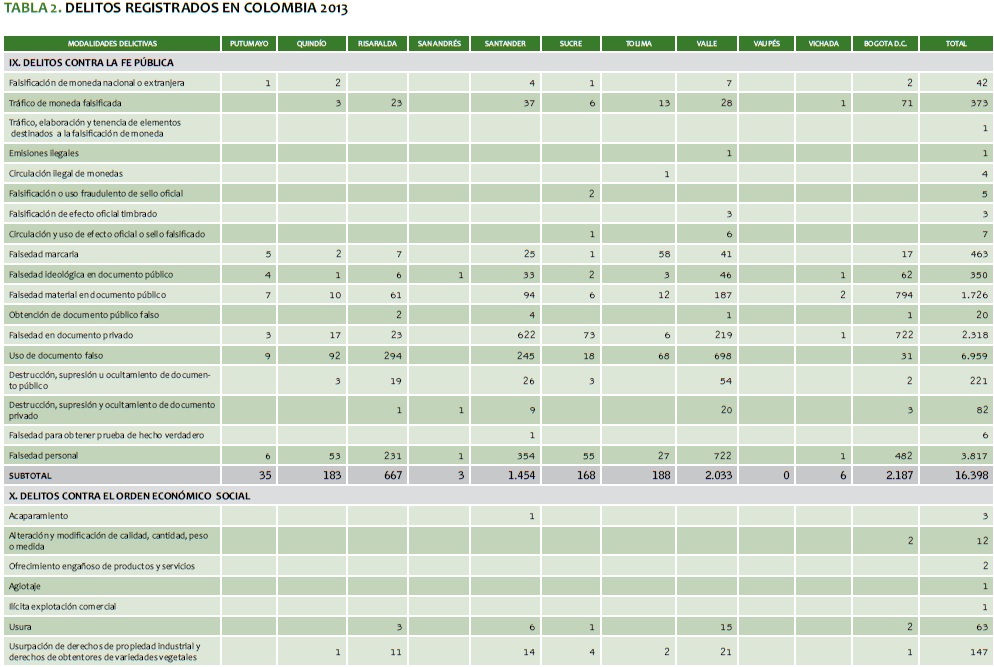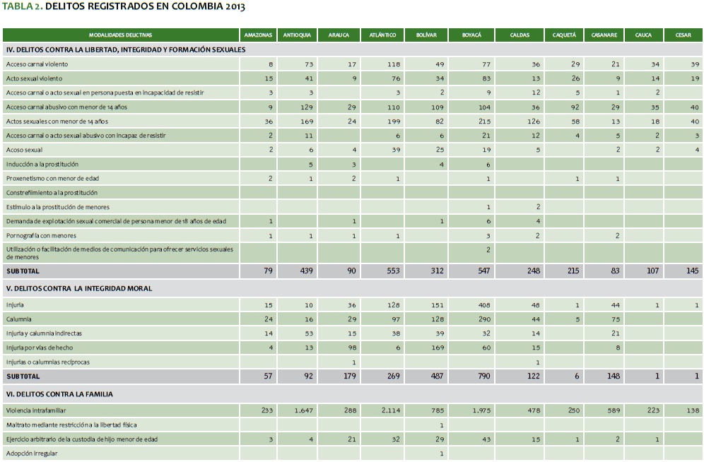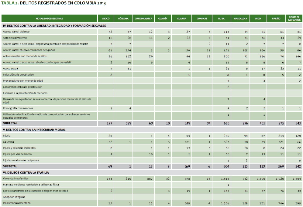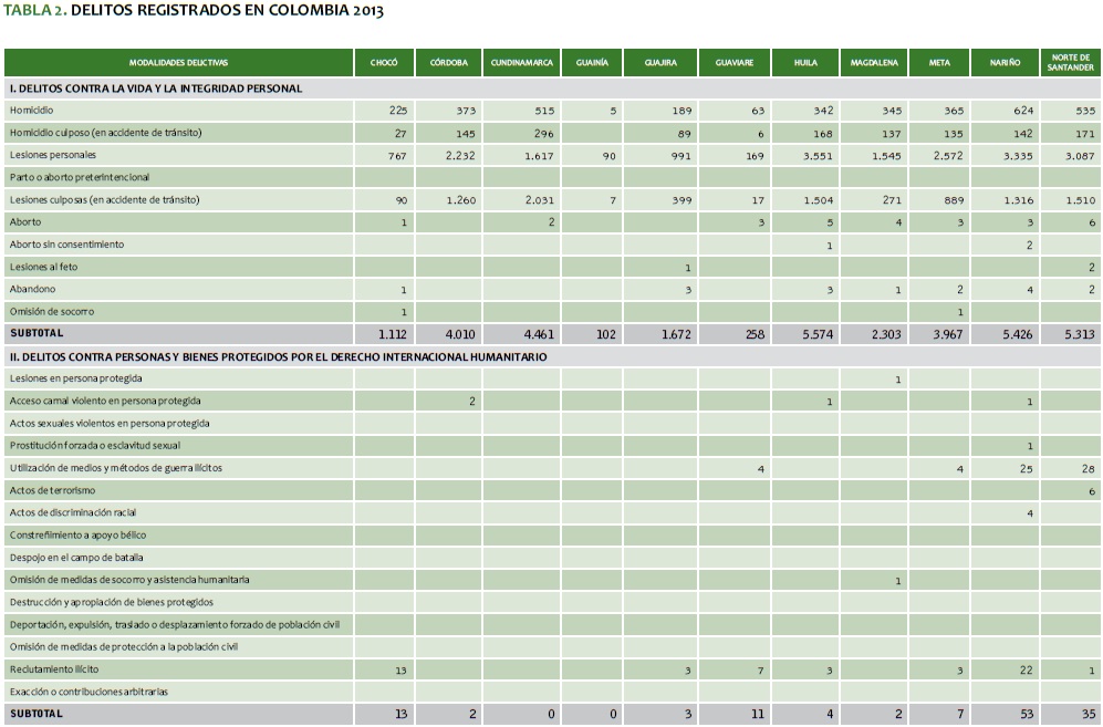 TABLA 2. DELITOS REGISTRADOS EN COLOMBIA 2013