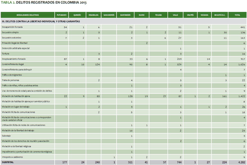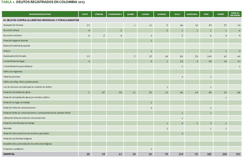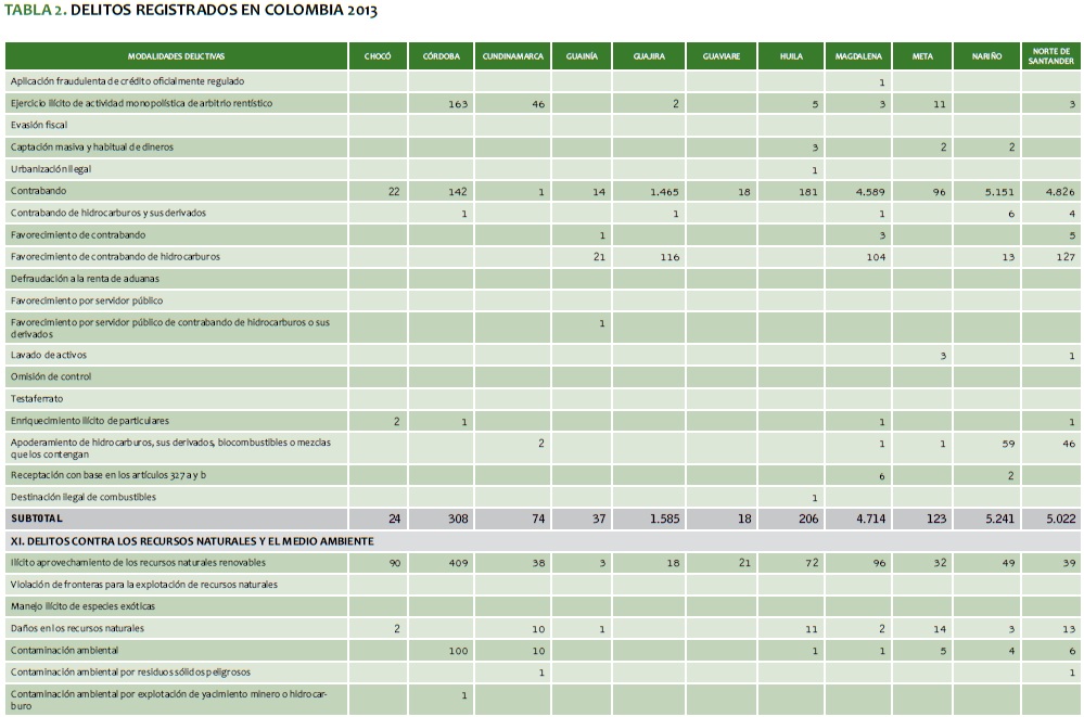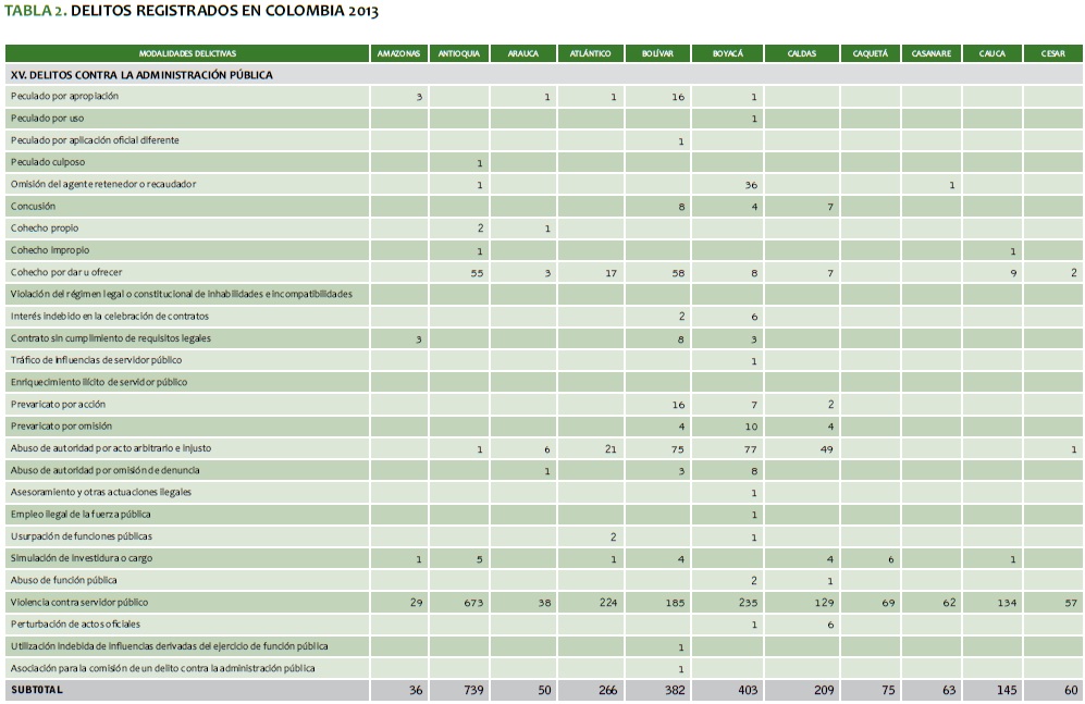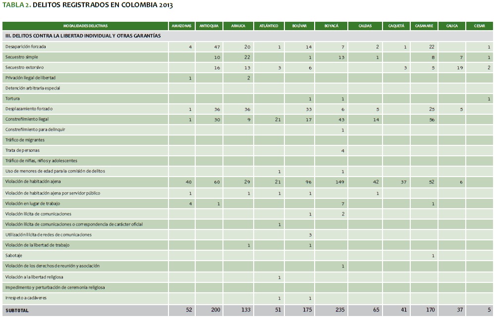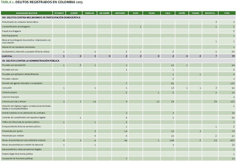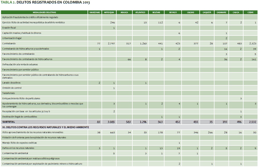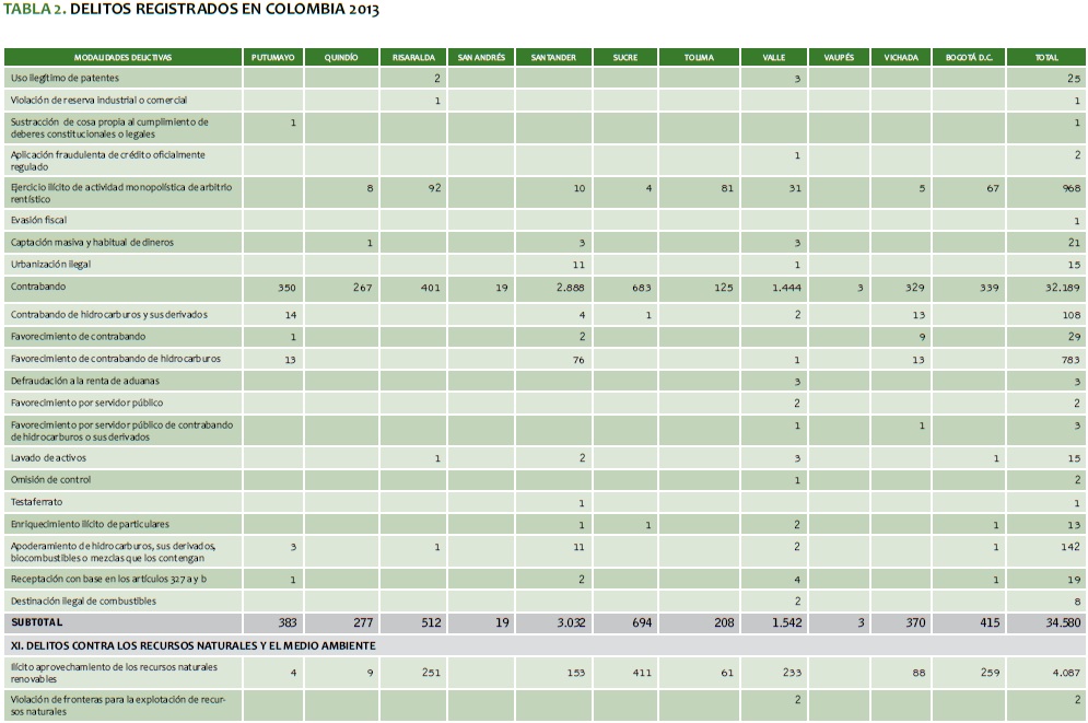 TABLA 2. DELITOS REGISTRADOS EN COLOMBIA 2013