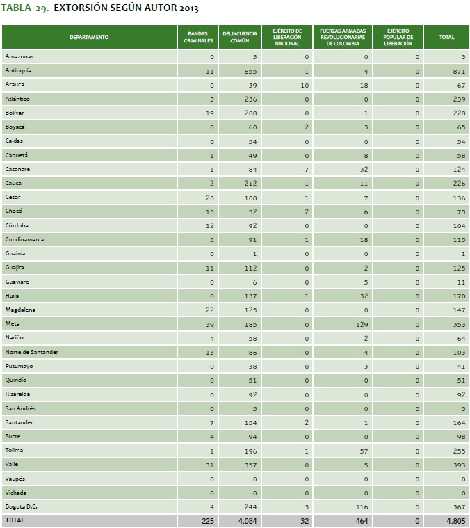 TABLA 29. EXTORSIóN SEGúN AUTOR 2013