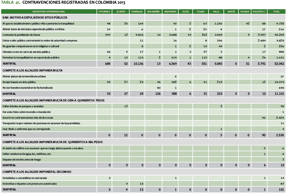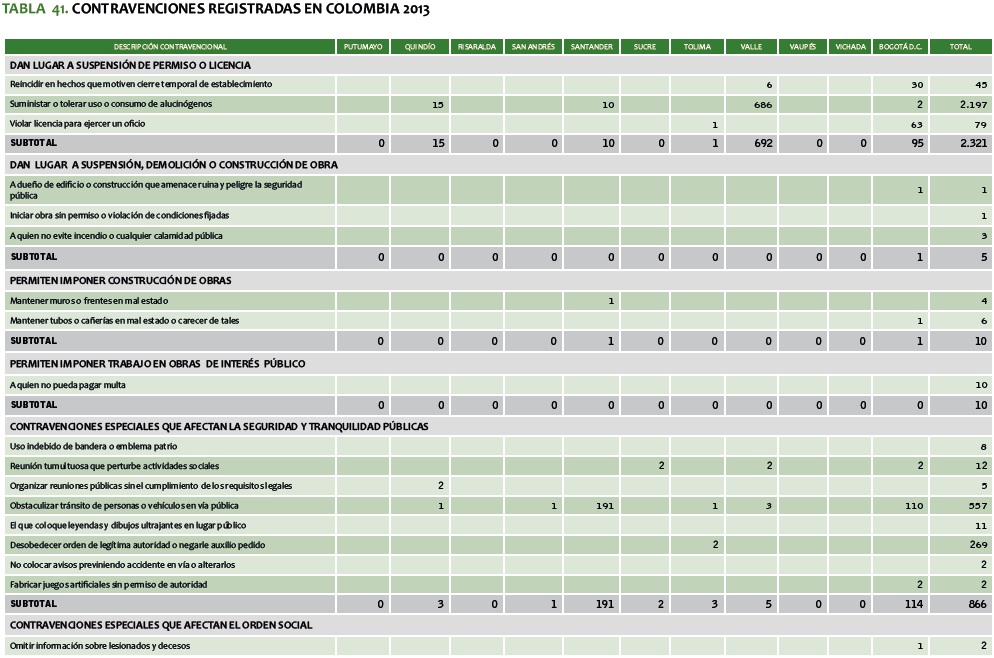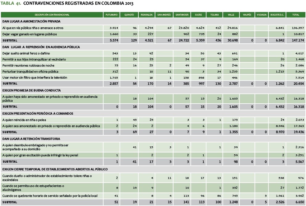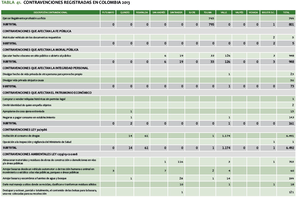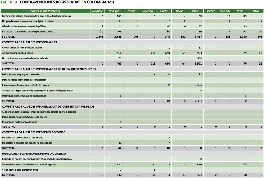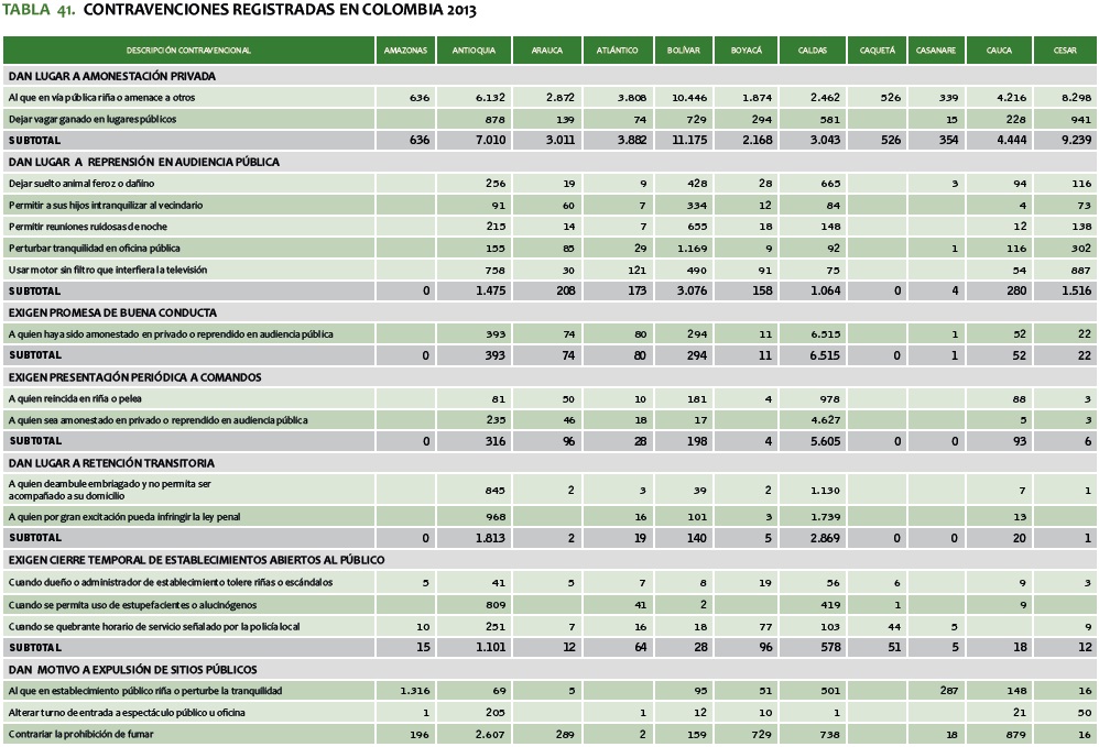 TABLA 41. CONTRAVENCIONES REGISTRADAS EN COLOMBIA 2013