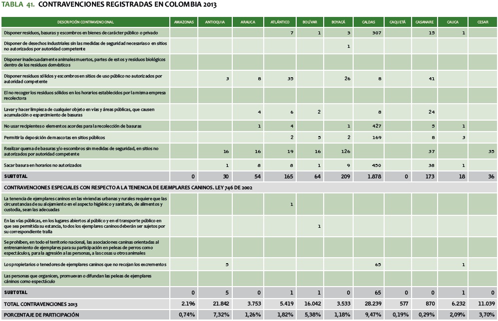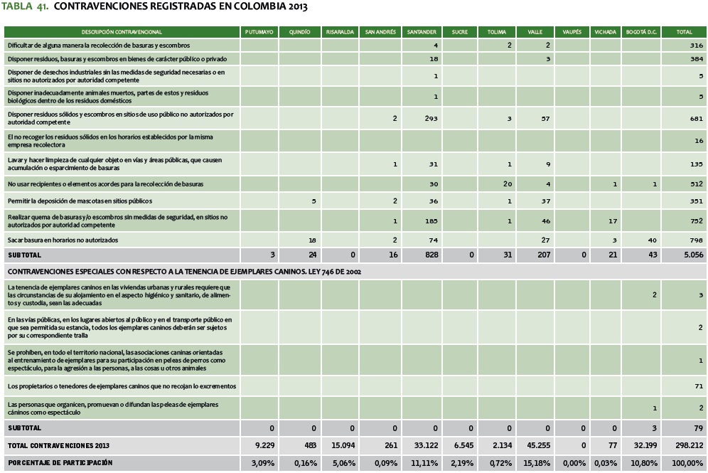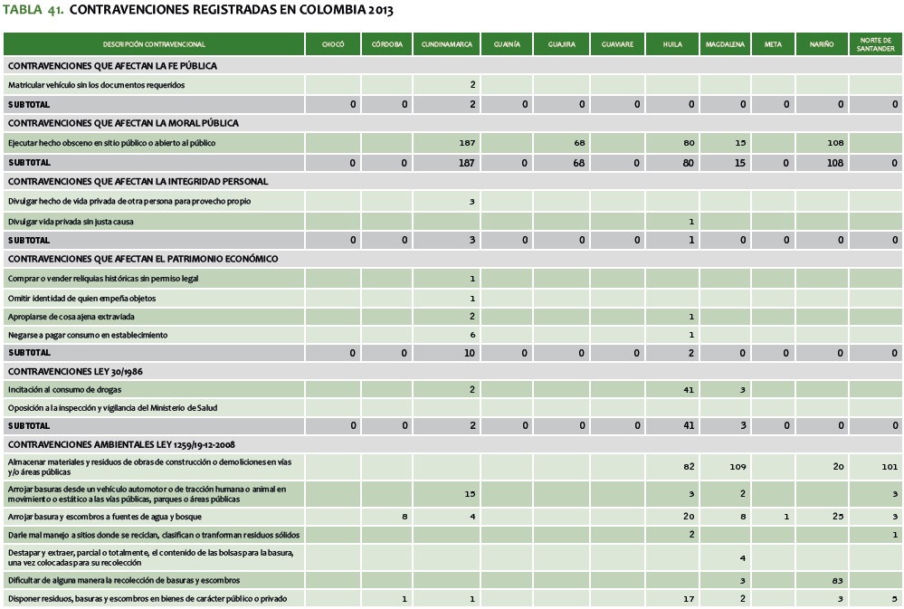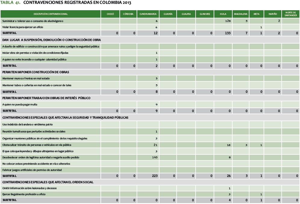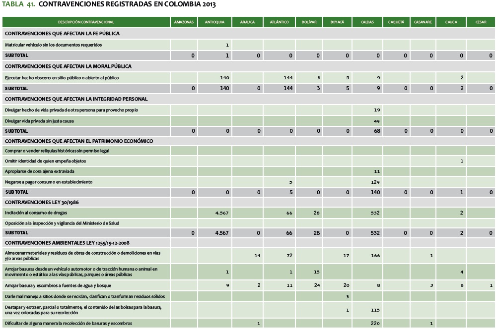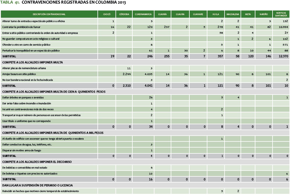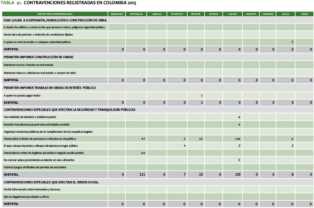 TABLA 41. CONTRAVENCIONES REGISTRADAS EN COLOMBIA 2013