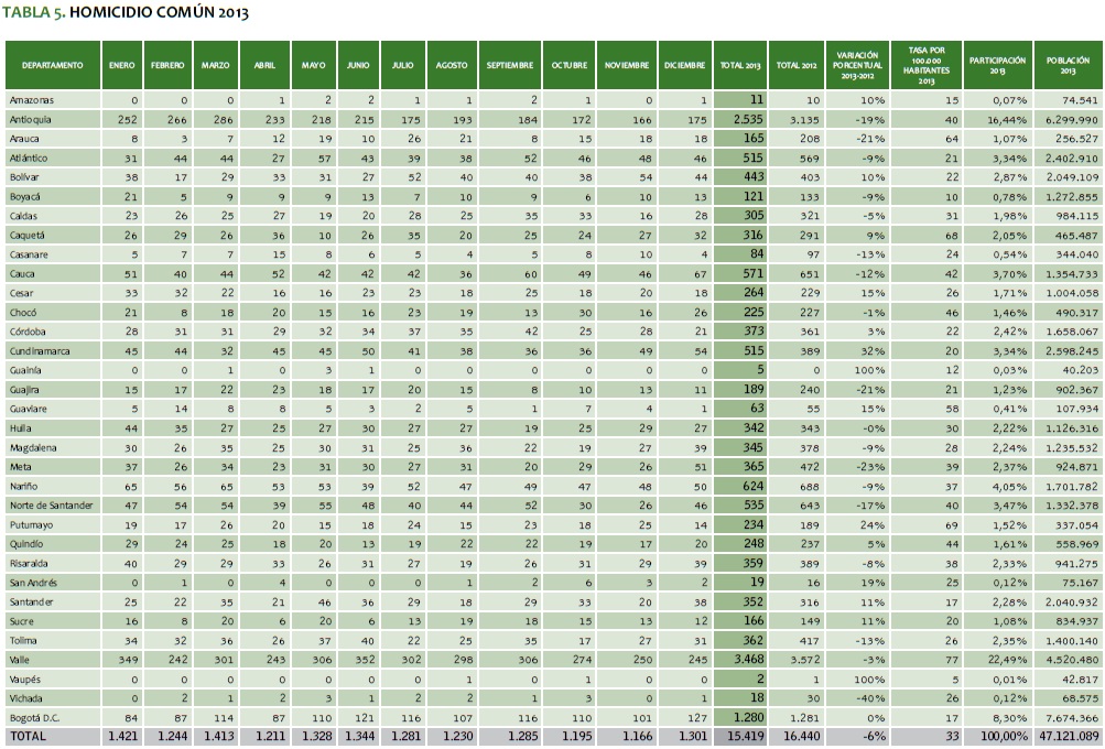 TABLA 5. HOMICIDIO COMúN 2013