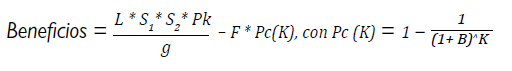 F = multa por cometer estos delitos. Se revisó el Código Penal y se toman en cuenta las multas en salarios mínimos legales vigentes y los años de privación de libertad, y se consideran, asimismo, las rebajas de 3/5 partes que pueden darse en este tipo de delitos, correspondiendo así a seis años de cárcel. Para medir el costo de oportunidad de estos seis años de cárcel, se toma el salario promedio colombiano para el 2019, según las cifras de la Organización para la Cooperación y el Desarrollo Económicos (OCDE, 2021).