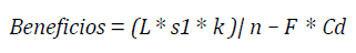 Las ganancias de la ciberdelincuencia vienen dadas por la parte izquierda de la ecuación, compuesta de L, s1, s2, k y n. Como se mencionó anteriormente, se asume s2 y n iguales a 1.
