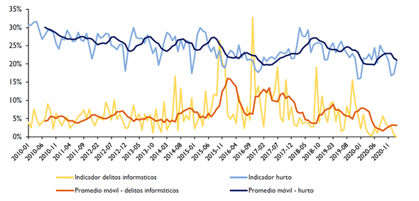 Figura 12 Comportamiento histórico del indicador de hurto calificado y delitos informáticos.