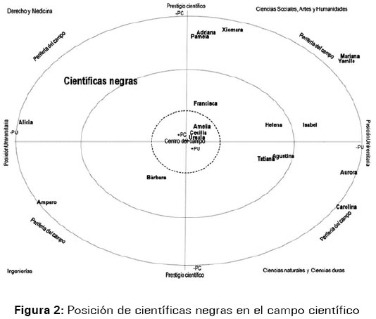 5 Consideramos necesario precisar aquí que se puede estar racializado como ''blanco'' o como ''indio'' y no sólo como ''negro''. Nos ha interesado centrarnos en el caso de las científicas racializadas como negras por encontrar que su lugar pone en evidencia un cierto orden socio racial según el cual lo blanco es la norma a partir de la cual se define el mérito y el prestigio que configuran el campo científico.