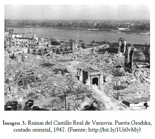 Los alemanes buscaban aniquilar al pueblo polaco mediante la destrucción de sus testimonios memoriales (imagen 3). Los polacos querían sobrevivir a la guerra preservando a como diera lugar esos mismos testimonios. Ambos proyectos, el de resistencia polaca y el de ataque alemán, repercutieron en el objeto testimonio que era la ciudad. Aunque los dos comportaban implicaciones diferentes, uno de destrucción, el otro de supervivencia, ambos tenían en común el objeto testimonio de la memoria histórica colectiva. La destrucción de la ciudad fue solo una consecuencia lógica, debido a que la ciudad es el escenario de la actividad humana y, por lo tanto, es la que reúne la mayor cantidad de objetos testimonio.