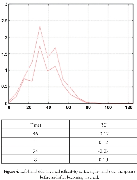 The synthetic seismogram in Figure 2 provided an accurate model when it was inverted, considering the 2 ms seismic resolution and the tiny difference between the expected and obtained reflection coefficients. The foregoing was reinforced by comparing the data's spectra amplitude before and after inversion, depicting a similar pattern and small power decay (Figure 4).