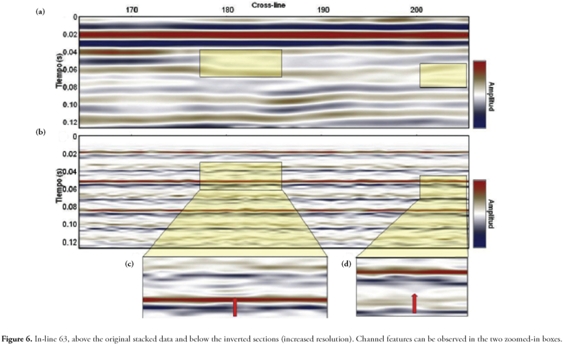 This methodology has provided information making a significant contribution to the vertical identification of geological features such as thin distributary channels in a flat tidal environment. However, it is recommended that future studies should be carried out aimed at solving problems related to seismic horizontal resolution.