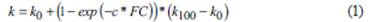 Where c is a material constant to be calibrated. Notice that for FC = 0, the proposed relation renders k = k0, while for FC = 100, a value of k ≈ k 100 is obtained. For the reported results, a value of c = 0.28 has been found to reproduce well the observed behavior. Figure 2 includes the experimental results in conjunction with the proposed relation, and an accurate estimation.