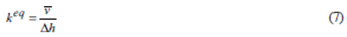 is the mean velocity of the water outflow. The latter is simply computed by averaging this variable at the top boundary nodes. Substitution of Equation 6 in Equation 5 yields to the following relation for the equivalent hydraulic conductivity: