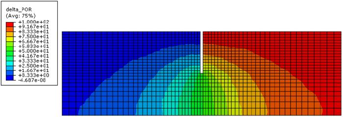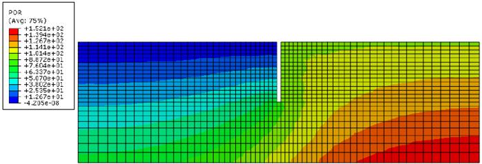 The contours of the pore water pressure are shown in Figure 17 and the excess of pore water pressure, computed as ∆pw = p