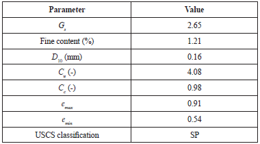 Table 2 Characterization test results of the Santo Tomás sand. G s : specific gravity, D 10: effective diameter, C u.uniformity coefficient, C c : curvature coefficient, e max : maximum void ratio, e mln : minimum void ratio