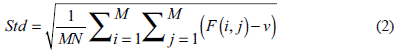 Standard deviation, which reflects the dispersion of DN values of all pixels and their DN means, can be used to evaluate the brightness of images. The higher the value, the more information the image contains. The specific formula is:
