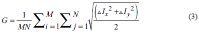 Where: M, N are the number of rows and columns of the image; ∆I x , ∆I y are the first-order difference of x direction and y direction, respectively; i, j are the line and column number of each pixel in the image of the same band.