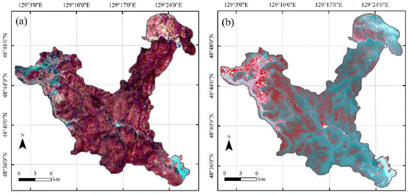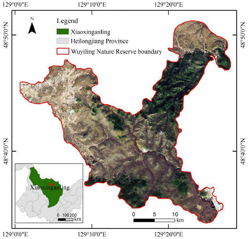 The images used in this study is located in Wuyiling national nature reserve, Geographic coordinates are 129°00'E-129°28'E,48°33'N-48°50'N, east of the Xiaoxing'an mountains peak, northeast Heilongjiang Province. Hyperspectral images can make up for the lack of distinguishing ground object information in wide-band remote sensing images (Yan, 2008). However, due to the low spatial resolution of hj-1a data source (100 m), by fusion with the high-resolution landsat-8 OLI full-color image (15 m), the spatial resolution of the data source was improved, so as to obtain more features of ground objects (Table 1). The auxiliary data include the vector boundary map of the research area and the measured data of the field sampling points.