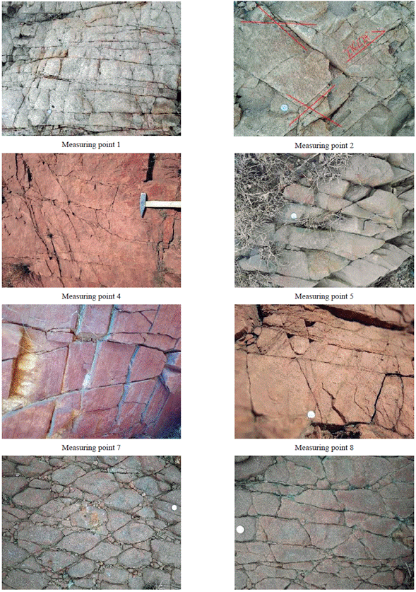 | Measuring point number | Representatives occurrence of joint set 1 | Representatives occurrence of joint set 2 | Principal stress axes | Period of tectonic stress field action | ||