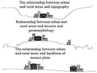 The results of the relationship between urban and rural types in different forms and topography in the Jinghe River Basin of the Loess Plateau are shown in Figure 2.