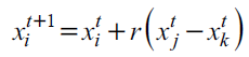 Where x t j and x t k represent two random solutions of generation t; r is a random number satisfying the uniform distribution principle between [0,1].